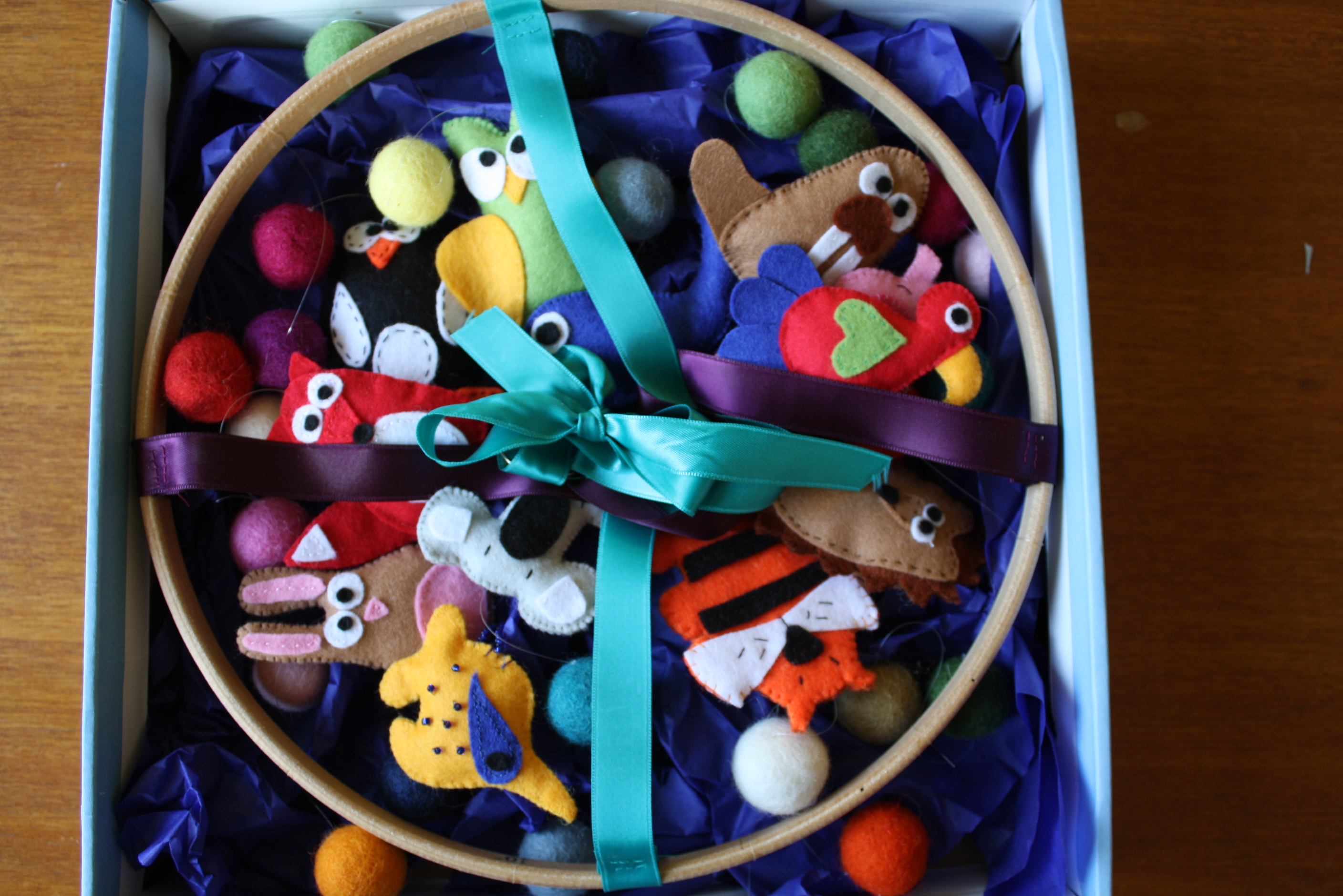 I have never really worked with felt before but I find it a lovely material to work with. All the animals are hand stitched and filled with fiber fill. They just look really cute!