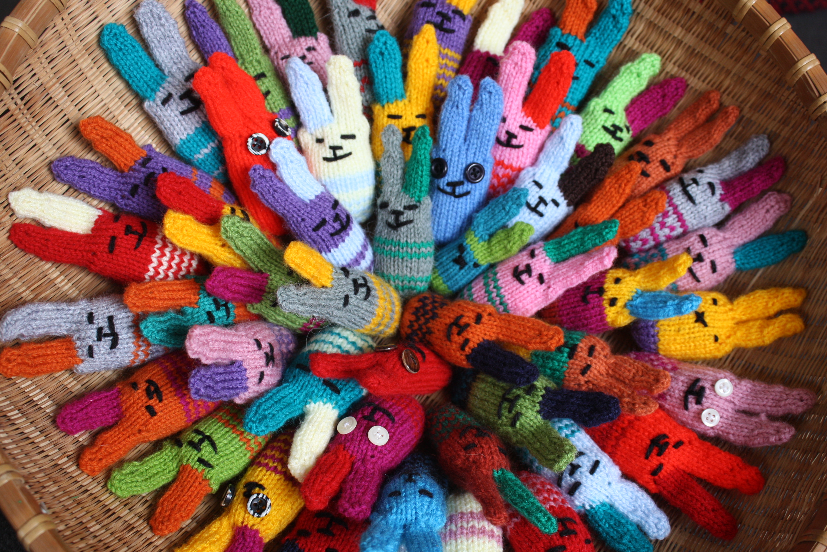 These bunnies are a really simple project and very easy to knit. Some of the bunnies have buttons for their eyes 🙂